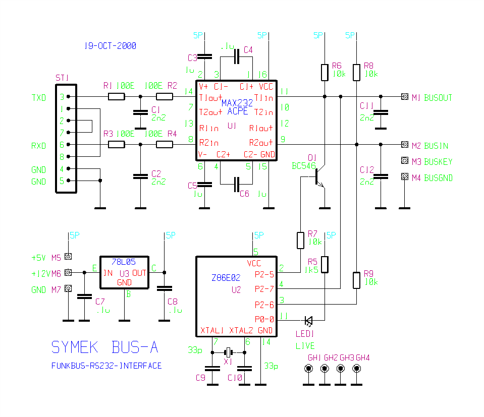 ![]() | BUS converts the 0v/5V open collector level of the BUSOUT wire to +/- 10 volt RS232 |