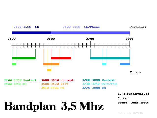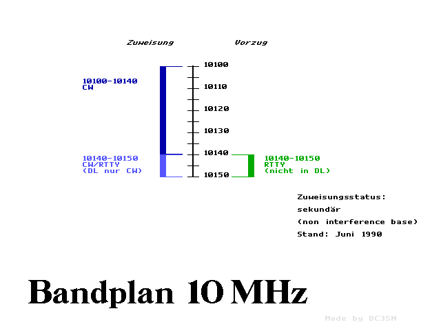 European / German Amateur Radio Frequency Bands (1996)