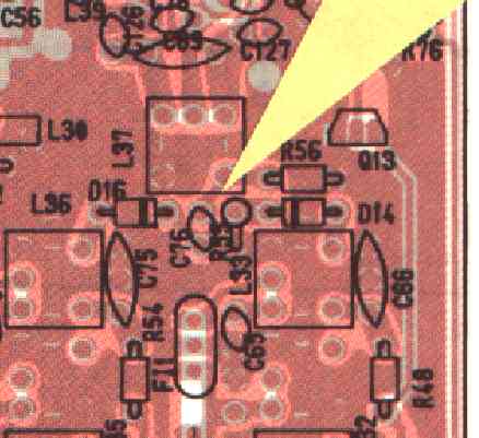 Remove coupling capacitor C76 (56pF) (shown as ellipse here) and solder the
